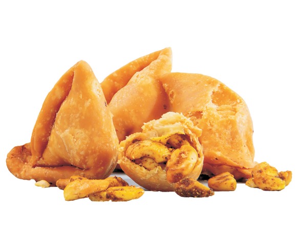 Kaju Dry Fruit Samosa (Savoury) is a crispy, deep-fried Indian snack filled with a rich and mildly spiced mixture of cashew nuts (kaju) and assorted dry fruits like almonds and raisins.